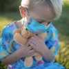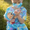 The set includes blue pants with a matching blouse, face mask, name tag, toy stethoscope, toy syringe, collar & your first patient. In a reusable blue clothing bag for easy storage with a hanger. The face mask included in this set is for play purposes only. Washing instructions: gentle washing cycle in the washing machine, without bleach, natural drying, iron at low temperature. Age: 5-6