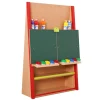 Very practical 2-seater easel, with storage space on the top and bottom of the board as well as behind the boards which open like doors. 10 cups for the colors are included. Dimensions: 110X44X157 cm. height.