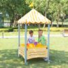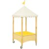 The large polypropylene (PP) tray is ideal for sensory play and creative activities. Thanks to the four built-in wheels, two of which have safety brakes, the table can be easily moved and secured in the right position. The roof is made of durable OXFORD fabric with a special PU coating, which makes it waterproof. Thus, children are protected from the weather while they play.