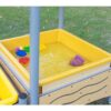 The Mobile Sand and Water Table is made of high-quality materials, ensuring durability and safety in use. Its frame is made of galvanized and electrostatically painted steel, providing excellent stability and resistance to weather conditions. The side elements are made of HPL (High Pressure Plywood), a particularly durable material that withstands the challenges of children’s play.
