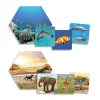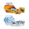 Cards Where do the animals live? Game consisting of 5 hexagonal cards (which depict the places where animals live) and 30 cards with pictures of animals. Children sort the cards according to where the animals live. On the farm, in the jungle, in the desert, at the poles or at sea. Card dimensions 7.5 x 7.5 cm. Dice height 3.5 cm Age 3 years and older