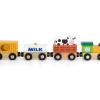 The wagons connect to each other with magnets, allowing children to easily attach and detach them. This encourages creative play and the development of stories around the farm, the animals, and the train’s journey. The toy can be used on its own or combined with other wooden train sets and tracks.