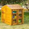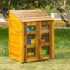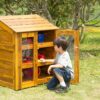 The wooden cabinet with transparent doors is a practical piece of furniture specially designed for outdoor use. It is the ideal solution for storing toys in the school yard.