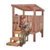 Loft wooden house, suitable for many uses such as book and relaxation corner, role-playing games, conversation corner, etc. Ideal for school yards. Solid wood construction, natural color.