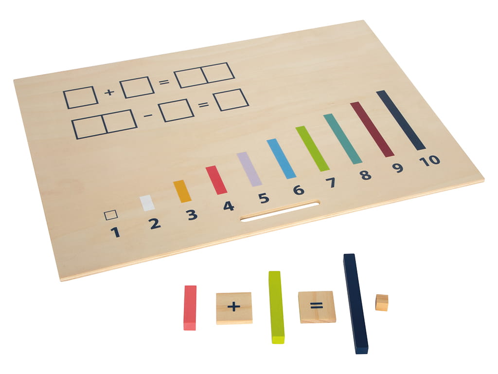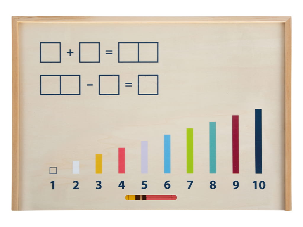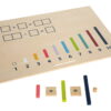 Children can count, compare, and sort the pieces, while the realistic illustrations on the box lid serve as a play surface and a tool for checking answers. The durable wooden construction and convenient sliding lid make the set ideal for use at home or at school. It enhances basic mathematical skills and logical thinking, combining learning and fun.