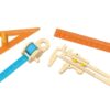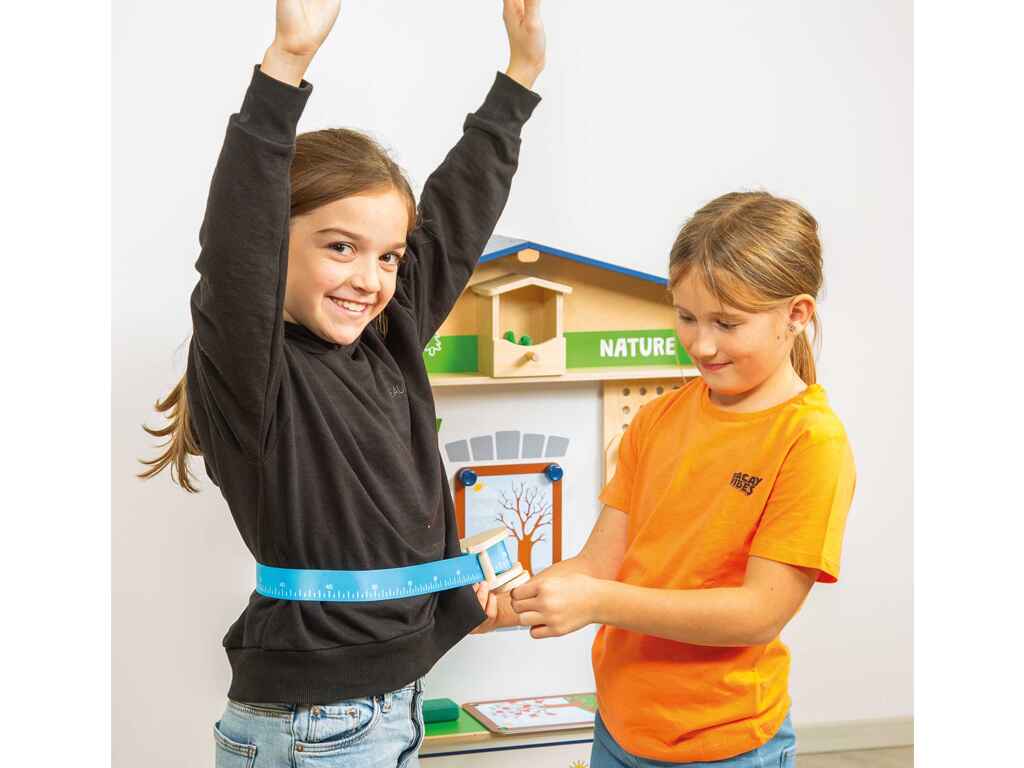 How wide, how tall, how long is something? The measuring tool set offers children a fun and constructive introduction to the exciting world of measurements. With four different tools (ruler, caliper, tape measure and measuring triangle) children explore concepts such as length, width and height through play.