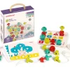 Σετ σφήνες σε διάφορα σχήματα (κύκλος, τετράγωνο και τρίγωνο) από οικολογικά υλικά. Περιλαμβάνει ένα πινακάκι από ανακυκλώσιμο αφρώδες υλικό, τρία βαμβακερά κορδόνια (3 x 1 m) και 8 διαφορετικές οδηγίες κατασκευής. Βοηθάει τα παιδιά να μάθουν τα σχήματα και τα χρώματα ενώ διασκεδάζουν. Διαστάσεις πίνακα: 19 x 19 εκ. Ηλικία: 3+
