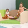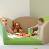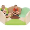 Αφρώδης γωνιά χαλάρωσης λουλούδι, που αποτελείται από 5 αφρώδη στρώματα με πλάτη, 1 χωρίς πλάτη και 1 κεντρικό στρόγγυλο μαξιλαράκι σε γήινες αποχρώσεις. Από μαλακό αφρό πολυουρεθάνης, επενδυμένος με δερματίνη που αφαιρείται και καθαρίζει εύκολα. Το κάλυμμα περιέχει κρυφό φερμουάρ που εγγυάται ασφαλές παιχνίδι. Με ενισχυμένες ραφές που προσφέρουν αντοχή και παρατείνουν σημαντικά τη διάρκεια ζωής του προϊόντος.