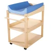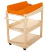 Φτιαγμένη από βερνικωμένο κόντρα πλακέ. Μπορεί να υποστηρίξει παιδιά έως 11 κιλά ή 12 μηνών. Εξοπλισμένη με τροχούς, οι 2 ρόδες κλειδώνουν. Εύκολο στην συναρμολόγηση. Χρώματα: Πορτοκαλί, μπλε, πράσινο. Διαστάσεις: 76 Χ 56 Χ 90 εκ.