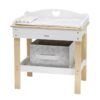 Η αλλαξιέρα-μπανάκι κούκλας 2 σε 1, κατασκευασμένη από ξύλο σε λευκό και φυσικό χρώμα, αποτελεί μια εξαιρετική προσθήκη στο παιχνίδι των παιδιών, ενθαρρύνοντας τη δημιουργικότητα και την ανάπτυξη κοινωνικών δεξιοτήτων. Αυτό το πολυχρηστικό παιχνίδι προσφέρει δύο διαφορετικές λειτουργίες αλλαξιέρα και μπανιέρα για κούκλες. Περιλαμβάνει επίσης κίτρινο παπάκι, στρώμα, μαξιλάρι, βρύση, ράφι και υφασμάτινο καλάθι για αποθήκευση, το οποίο βοηθά στη διατήρηση της τάξης και της οργάνωσης των αξεσουάρ της κούκλας.