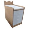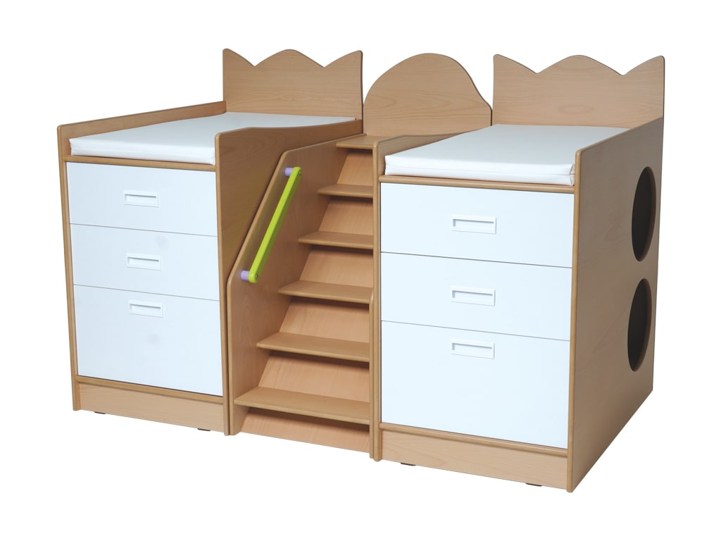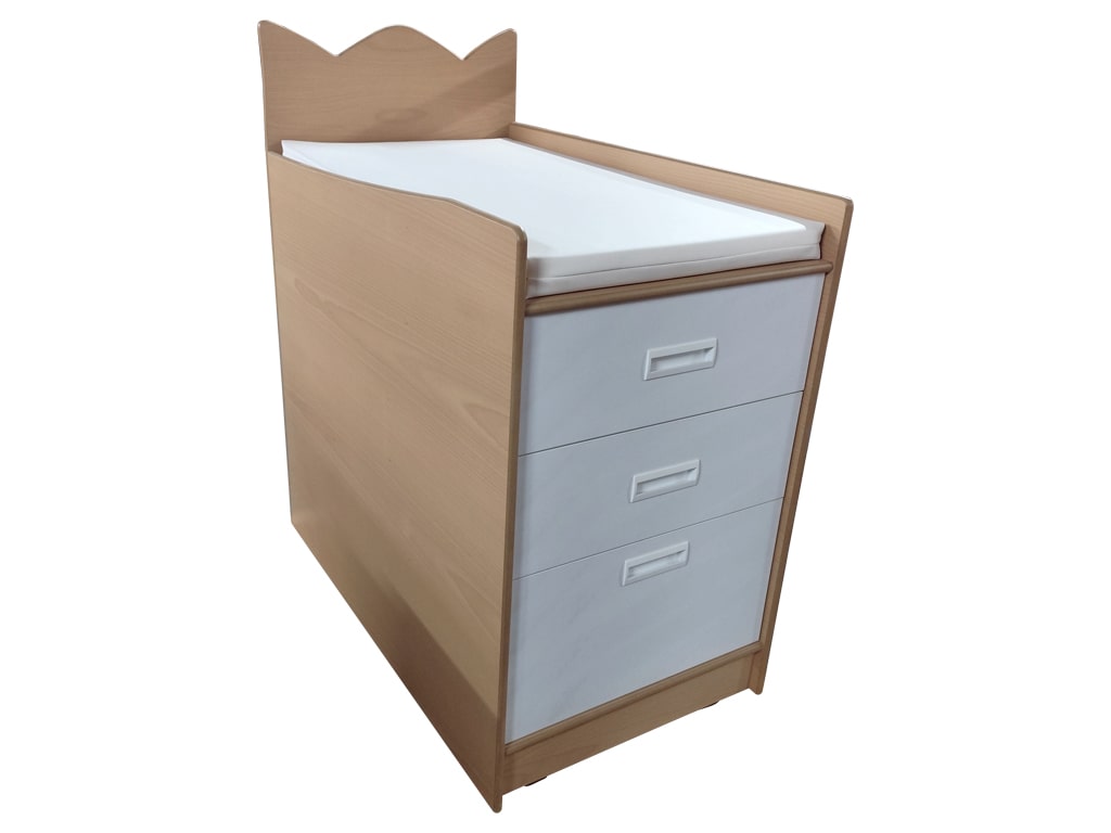 Αλλαξιέρα βρεφών XL, κατασκευασμένη από συνθετικό ξύλο MDF με επένδυση οξιάς και από μοριοσανίδα με επένδυση μελαμίνης τα συρτάρια. Περιλαμβάνει 3 συρτάρια σε 2 μεγέθη κάτω από την επιφάνεια αλλαγής, όπου μπορείτε να τοποθετήσετε απαραίτητα αντικείμενα για τη φροντίδα των βρεφών, όπως πάνες, ρούχα κ.λ.π. και 2 μεγάλα ράφια στο πλάι με έξτρα αποθηκευτικό χώρο. Περιλαμβάνεται στρωματάκι με επένδυση από λευκή δερματίνη. Διαστάσεις: 60,5 Χ 103 Χ 115 εκ. Στρώμα: 57 Χ 100 Χ 5,5 εκ. Ύψος πάγκου: 91 εκ.