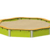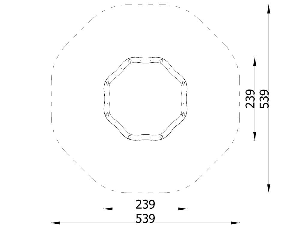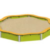 Η κατασκευή του είναι υψηλής ποιότητας, με δομικά στοιχεία από ανοξείδωτο ατσάλι και πλευρές και καθίσματα από HDPE, εξασφαλίζοντας μακροχρόνια αντοχή και ασφάλεια. Το πλαίσιο είναι σχεδιασμένο για άμεση αγκύρωση στο έδαφος, προσφέροντας σταθερότητα κατά τη χρήση. Το γύρω πλαίσιο λειτουργεί ως καθιστικό για τα παιδιά, κατασκευασμένο από HDPE υψηλής αντοχής.