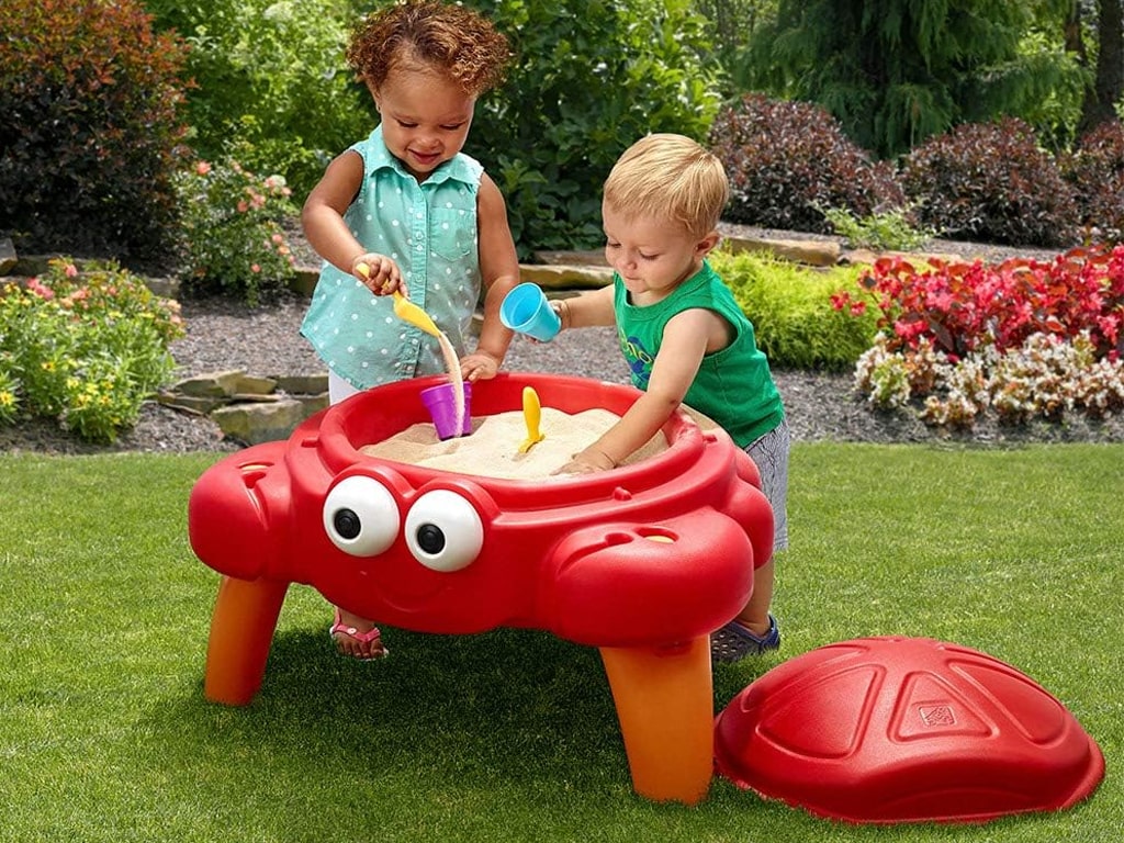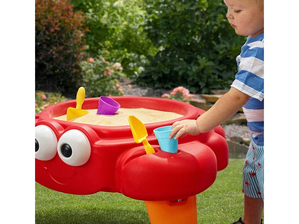 Αμμοδόχος καβουράκι Ηλικία: 18m+. Διαστάσεις: 55,9×61,9×61,6 εκ. Αποτελείται από την αμμοδόχο με το καπάκι της και 4 αξεσουάρ (2 κουβαδάκια και 2 φτυαράκια). Χωράει 11,3 κιλά άμμο, η οποία δεν περιλαμβάνεται.