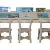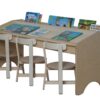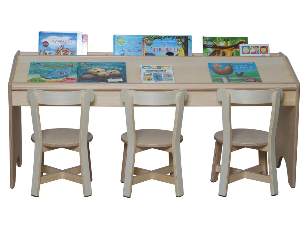 Διαθέτει τρεις κάθετες θήκες αποθήκευσης στο επάνω μέρος, ιδανικές για την τακτοποίηση βιβλίων ή υλικού. Ο εργονομικός σχεδιασμός του προσφέρει άνετο χώρο για τρεις μικρούς αναγνώστες, διευκολύνοντας τη συνεργατική ήσυχη ανάγνωση ή ατομική ενασχόληση με τα βιβλία.