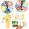 Ανακαλύψτε τους αριθμούς από το 1 έως το 10. Μάθετε τους αρθμούς χρησιμοποιώντας απτικές διαδρομές, σφηνώματα, παζλ και κάρτες για να περάσετε κορδόνια. Γυρίστε τους τροχούς και μάθετε με διασκεδαστικές προκλήσεις. Από χαρτόνι υψηλής ποιότητας. Περιλαμβάνει: 2 τροχούς, 40 τετράγωνες κάρτες , 10 κάρτες με 10 κορδόνια σε διαφορετικά χρώματα για δέσιμο. Διαστάσεις: τροχούς 12 εκ. τετράγωνες, κάρτες 6,5 εκ., κάρτες 8 x7 εκ. Ηλικία: 3 ετών και άνω.