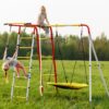 Υπαίθρια παιδική χαρά με κούνια και αναρρίχηση που θα βοηθήσει τα παιδιά καθώς διασκεδάζουν να δυναμώσουν όλο το σώμα τους και να ενισχύσουν την αντοχή τους και πολλές κινητικές και πνευματικές δεξιότητες όπως, την ευλυγισία, τον συντονισμό, τη συγκέντρωση, την αυτοπεποίθηση τους κ.α.