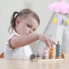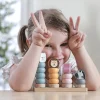 Παιχνίδι στοίβαξης, με ξύλινες χάντρες και μπλοκ με χαριτωμένα πρόσωπα ζώων. Θα βοηθήσει τα μικρά παιδιά στη συγκέντρωση, στον συντονισμό χεριού-ματιού, στην αντίληψη και θα ξεκινήσουν να μαθαίνουν αριθμούς και να μετράνε.