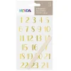 Ιδανικό για διακόσμηση σε χαρτί και χαρτόνι, μεταφέρεται επίσης σε λείες επιφάνειες όπως γυαλί, πορσελάνη, ξύλο και πολλά άλλα για διακοσμητικούς σκοπούς. Με οδηγίες. Δεν πλένεται στο πλυντήριο πιάτων. Διαστάσεις αριθμών: 0,7-2 x 1,5 εκ. Χρώμα: χρυσό.