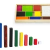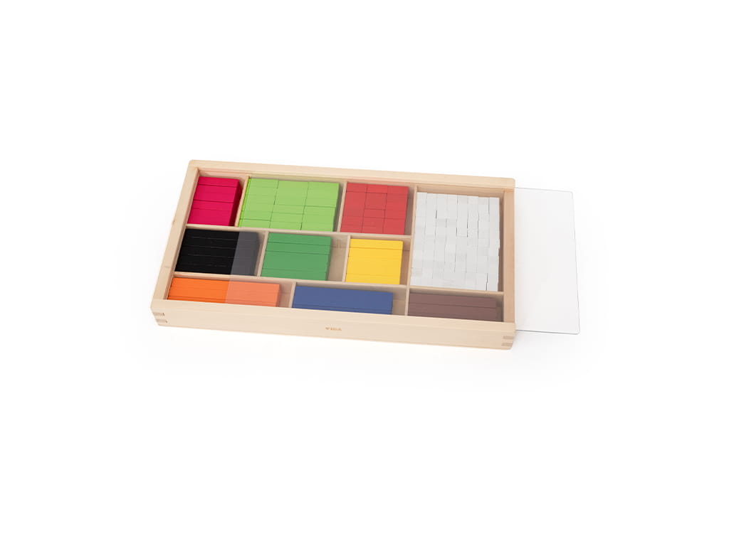Αποτελείται από 308 κομμάτια με ποικιλία παραλληλόγραμμων διαφορετικού χρώματος και μήκους. Βοηθάει στην εκμάθηση βασικών μαθηματικών πράξεων (Πρόσθεση και αφαίρεση, κλάσματα και δεκαδικοί, πολλαπλασιασμός και διαίρεση) με διασκεδαστικό τρόπο. Οι ράβδοι διατίθενται σε 10 διαφορετικά μεγέθη και χρώματα και κάθε χρώμα αντιπροσωπεύει ένα διαφορετικό μήκος ράβδου. Η πιο μικρή ράβδος είναι 1 εκ. και η μεγαλύτερη είναι 10 εκ. Διαστάσεις συσκευασίας: 30 x 10 x 2 εκ. Ηλικία: 3 ετών και άνω