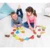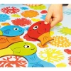 Χαλάκι ταξινόμησης με αντιολισθητική βάση και 44 ξύλινα και πολύχρωμα ψαράκια. Τα παιδιά μπορούν να ταξινομήσουν τα ψαράκια με βάση το χρώμα τους στο χαλάκι ή να φτιάξουν ντόμινο. Παίζωντας θα μάθουν τα χρώματα και θα βελτιώσουν την ικανότητα επίλυσης προβλημάτων, την οπτική αντίληψη και τη συγκέντρωση. Διάμετρος χαλιού: 80 εκ. Μήκος ψαριού: 12 εκ. Ηλικία: 4 ετών και άνω.