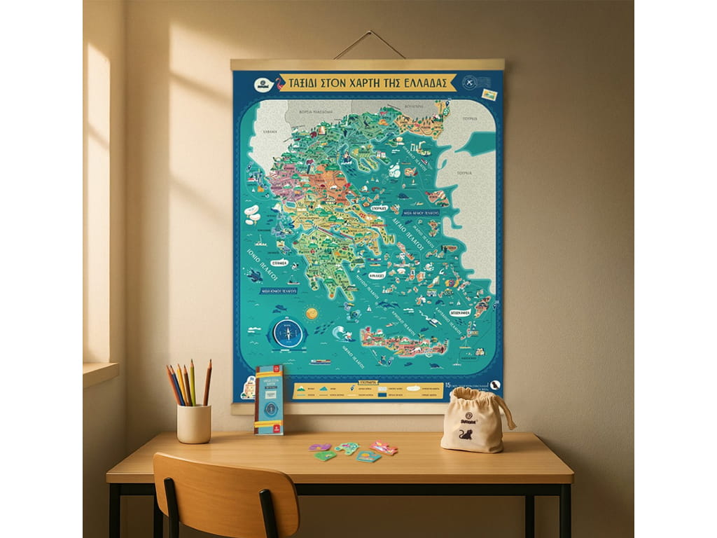 Το ταξίδι στον χάρτη της Ελλάδας, είναι ένα μαγνητικό παζλ χάρτης που συνδυάζει μάθηση και διασκέδαση για όλη την οικογένεια. Με εντυπωσιακή εικονογράφηση γεμάτη γεωμορφολογικά στοιχεία όπως βουνά, ποτάμια και λίμνες, αλλά και μαγνητάκια που αναδεικνύουν τοπικά προϊόντα, αξιοθέατα και παραδοσιακά έθιμα, προσκαλεί τα παιδιά να γνωρίσουν τη μοναδική γεωγραφία και πολιτιστική κληρονομιά της Ελλάδας.
