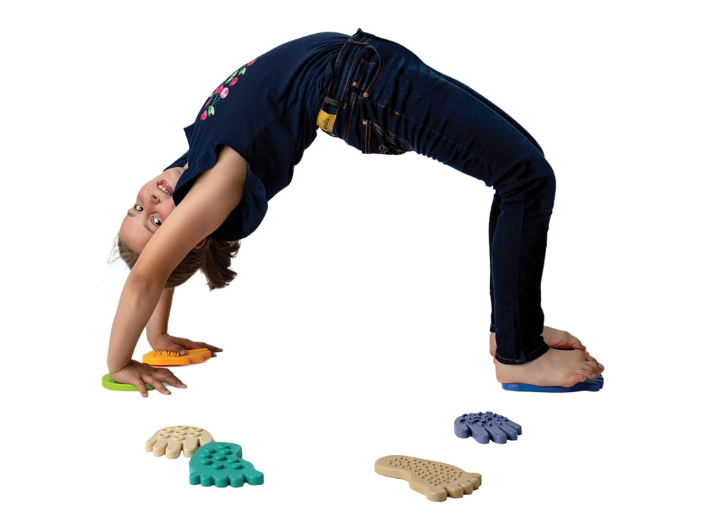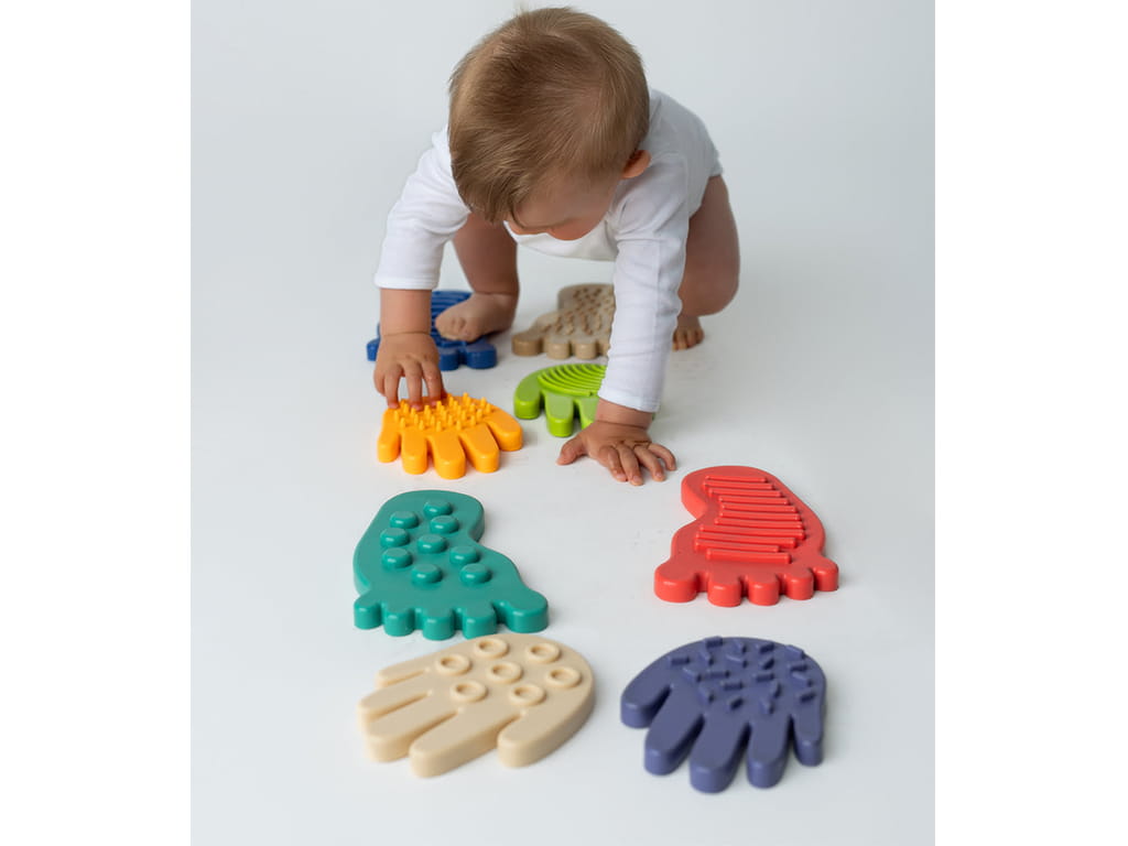 Το σετ περιλαμβάνει 8 τεμάχια 4 χεράκια και 4 πατούσες, με διαφορετικές υφές που ενεργοποιούν τους αισθητηριακούς υποδοχείς και ενισχύουν την ανάπτυξη της αφής. Μαζί με τις 20 κάρτες δραστηριοτήτων, τα παιδιά μπορούν να κάνουν ασκήσεις ισορροπίας, να κινηθούν, να παίξουν και να εξερευνήσουν τον κόσμο γύρω τους με διασκεδαστικό τρόπο. Ιδανικό για οικιακή χρήση, παιδικούς σταθμούς, θεραπευτικά κέντρα ή ομαδικά παιχνίδια με φίλους και αδέρφια.