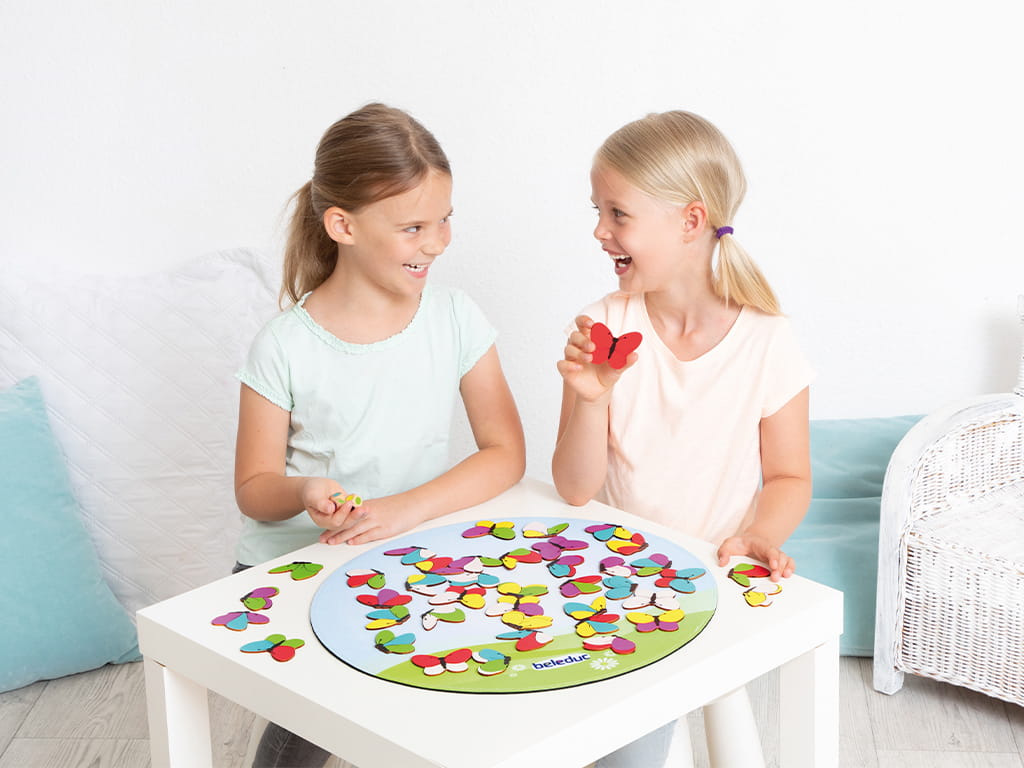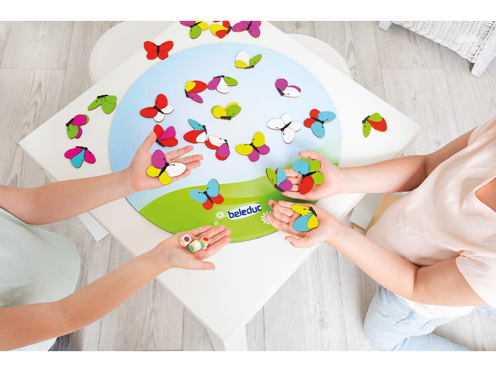 Το επιτραπέζιο χρωματιστές πεταλουδίτσες είναι ένα διασκεδαστικό και εκπαιδευτικό παιχνίδι που ενισχύει τις παρατηρητικές δεξιότητες, την αναγνώριση χρωμάτων και τη συγκέντρωση των παιδιών. Στο παιχνίδι, πολλές πολύχρωμες πεταλούδες πετούν στον αέρα και τα παιδιά πρέπει να συλλέξουν γρήγορα τις σωστές, αναπτύσσοντας ταχύτητα αντίδρασης και δεξιότητες οπτικής αντίληψης.