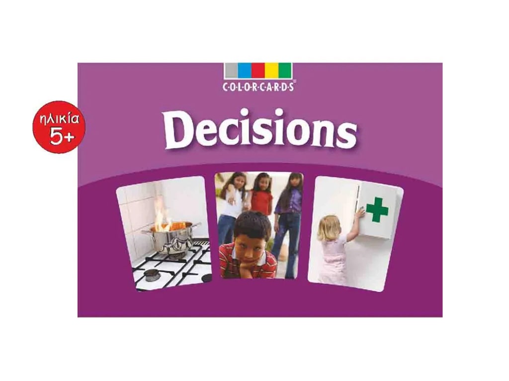 Colorcards Αποφάσεις. 30 κάρτες μεγέθους Α4. Απεικονίζουν απρόσμενες και ανεπιθύμητες καταστάσεις στις οποίες τα παιδιά σκέφτονται προκειμένου να πάρουν τη σωστή και υπεύθυνη απόφαση κάθε φορά για να ξεπεράσουν ένα πρόβλημα. Ηλικία: 5+
