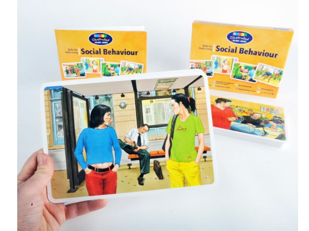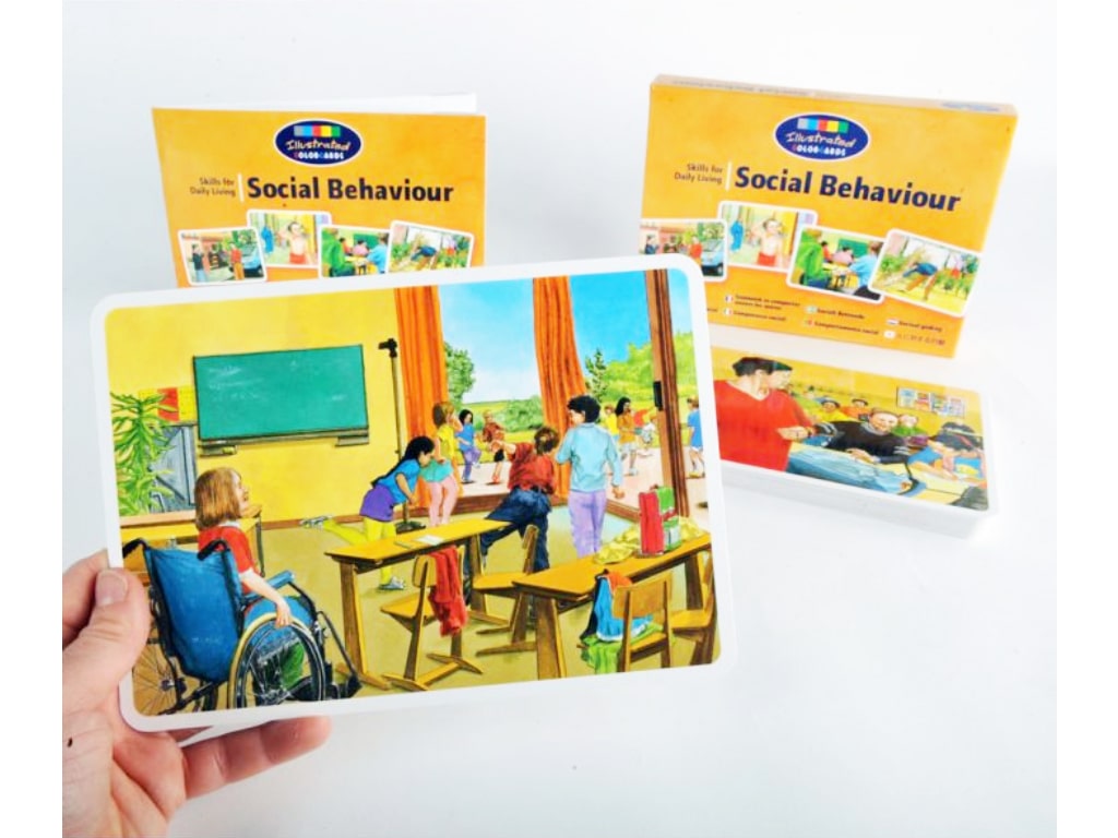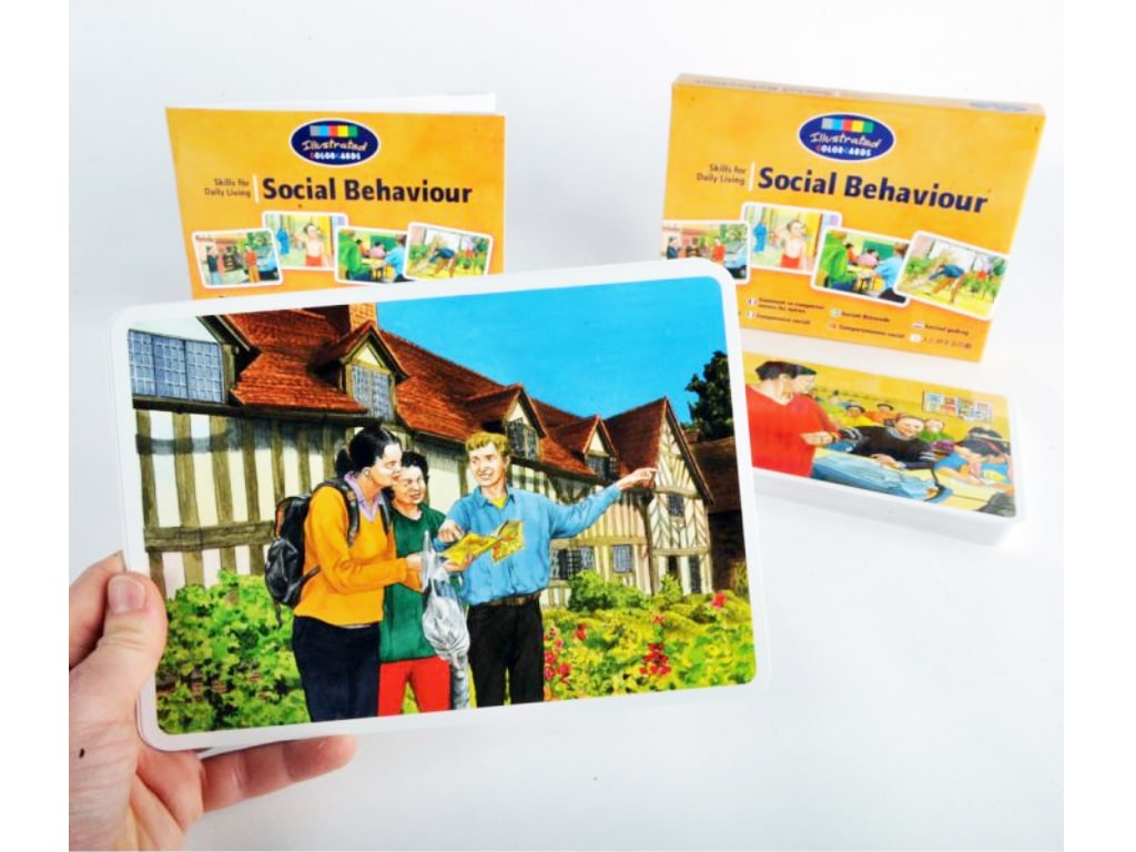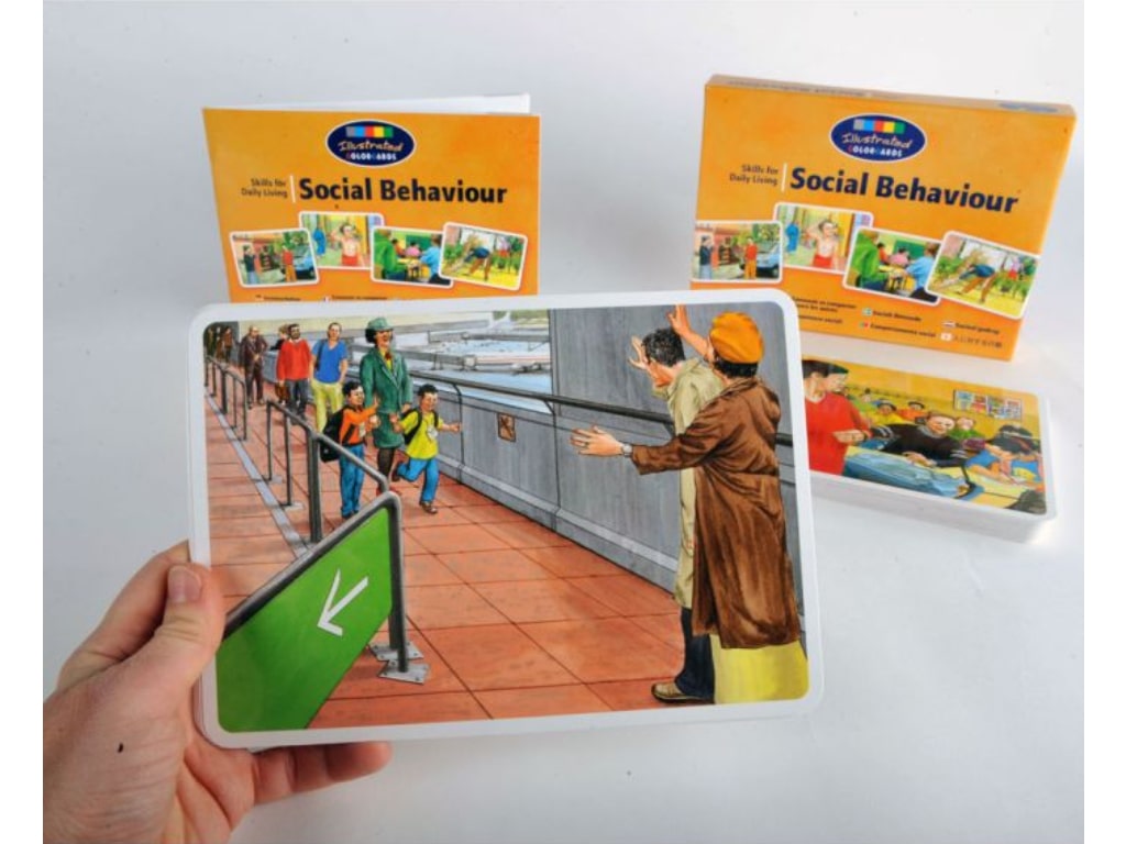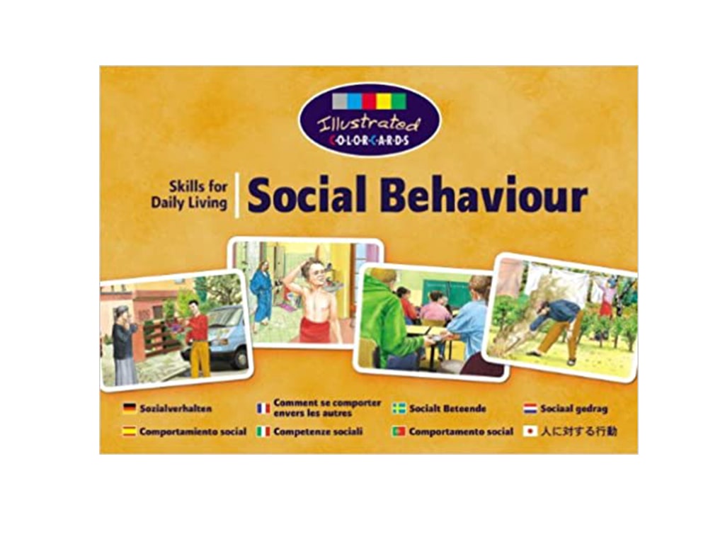 Colorcards κοινωνική συμπεριφορά. Αυτές οι έγχρωμες κάρτες απεικονίζουν μια ποικιλία οικείων καταστάσεων και δραστηριοτήτων που μπορούν να χρησιμοποιηθούν με μεγαλύτερα παιδιά και ενήλικες που χρειάζονται παρέμβαση στον τομέα της κατάλληλης κοινωνικής συμπεριφοράς. Ορισμένες κάρτες δείχνουν καλή κατανόηση των κοινωνικών δεξιοτήτων, ενώ άλλες δείχνουν κακή κατανόηση από ένα ή περισσότερα άτομα. Οι καταστάσεις περιλαμβάνουν: ενόχληση άλλων ανθρώπων, βοηθώντας ένα άτομο με αναπηρία, φροντίδα για ένα ζώο και απάτη σε εξετάσεις. Οι κάρτες δείχνουν επίσης μη λεκτική επικοινωνία, όπως στάση, χειρονομία, έκφραση προσώπου, σεβασμό στον προσωπικό χώρο και την εμφάνιση. ‘Εχει δημιουργηθεί από έμπειρους λογοθεραπευτές. Περιέχει 44 κάρτες και φύλλο οδηγιών. Κατάλληλες για όλες τις ηλικίες. Διαστάσεις: 21 x 15 εκ.