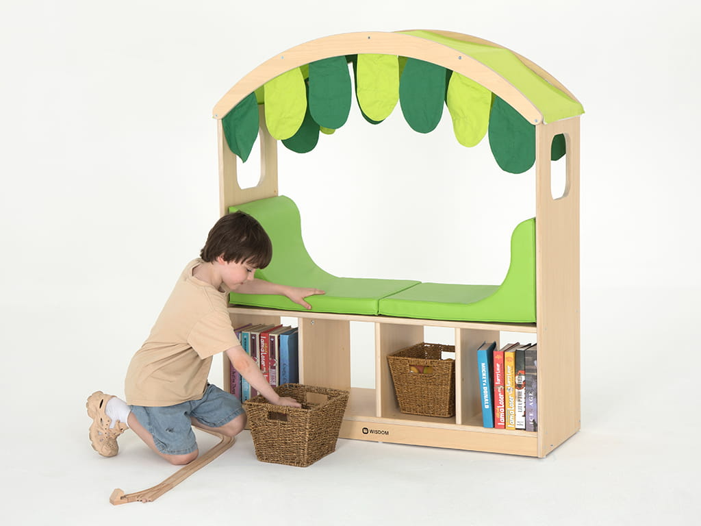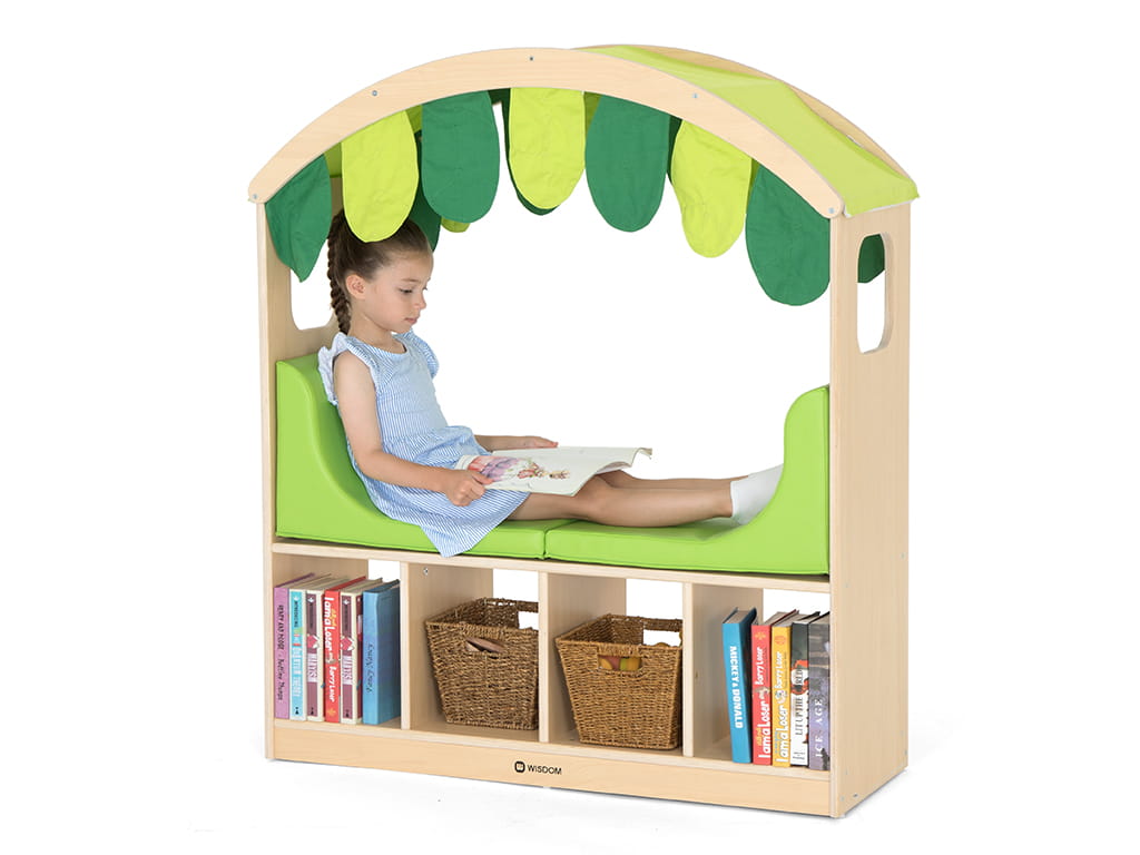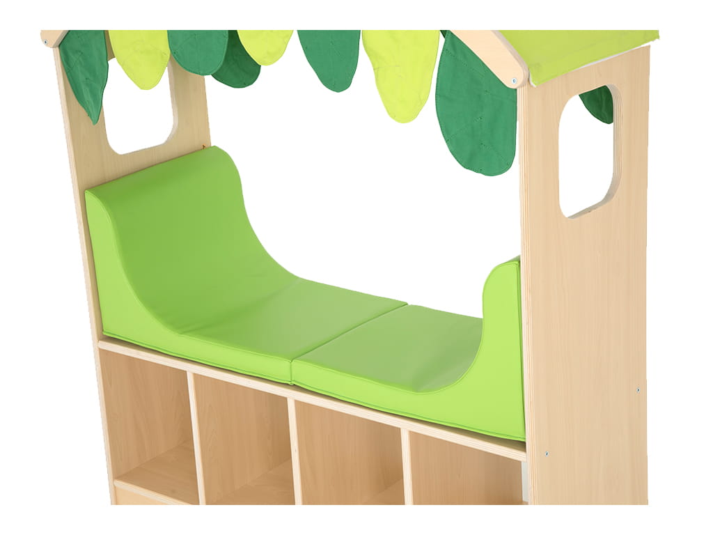 Η cosy γωνίτσα χαλάρωσης και ανάγνωσης συνδυάζει πρακτικό χώρο αποθήκευσης με άνετο κάθισμα. Το κάτω μέρος της γωνίτσας προσφέρει χώρο για βιβλία, καλάθια ή παιχνίδια, ενώ το επενδεδυμένο κάθισμα προσκαλεί τα παιδιά να καθίσουν, να διαβάσουν ή να χαλαρώσουν.
