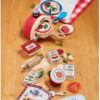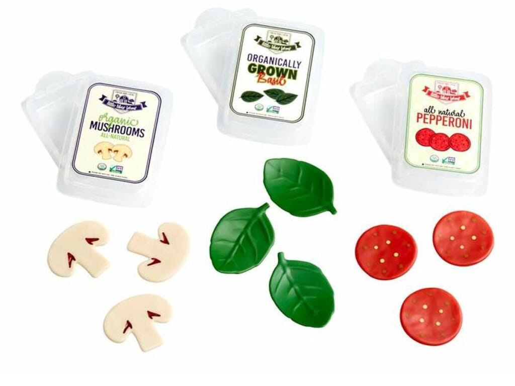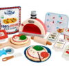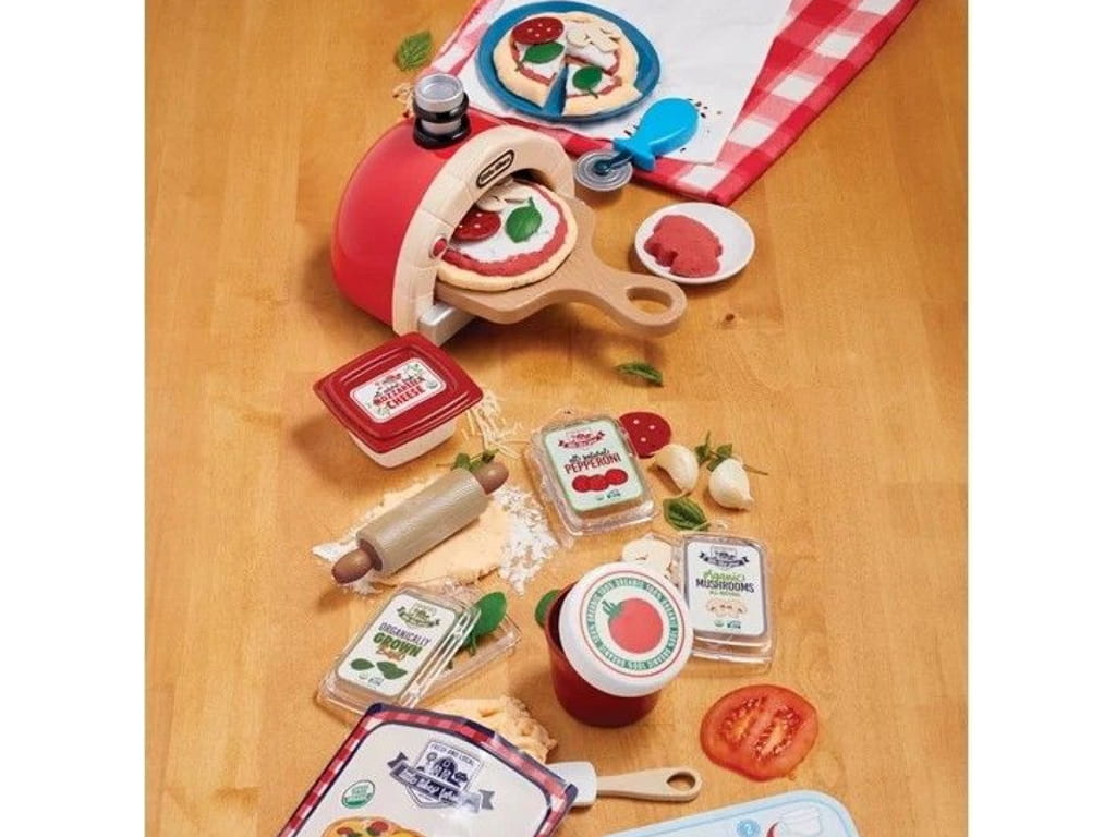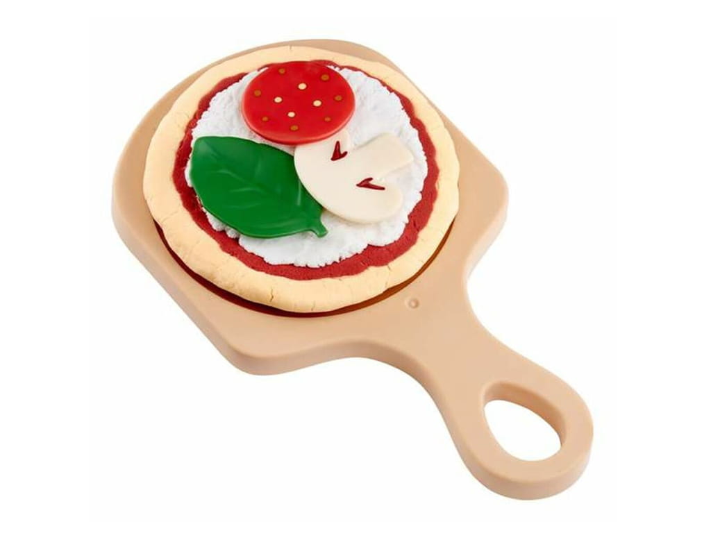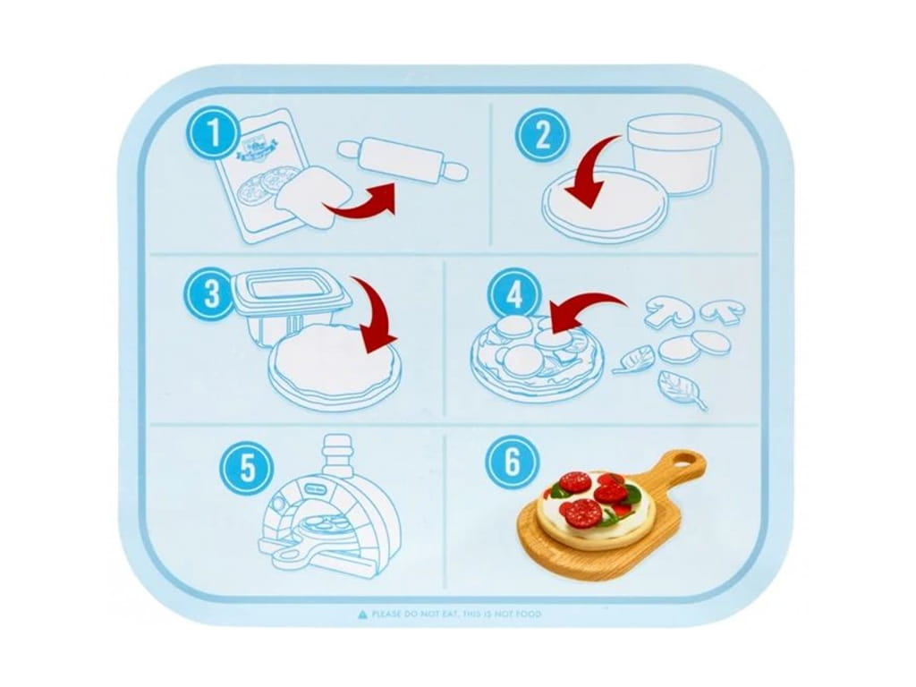 Το σετ περιλαμβάνει εικονογραφημένη συνταγή που καθοδηγεί τα παιδιά στα βασικά υλικά και στη διαδικασία παρασκευής της πίτσας, καθώς και ειδικό επαναχρησιμοποιήσιμο υλικό τύπου μαγικής άμμου που πλάθεται εύκολα. Τα λεπτομερή τρόφιμα παιχνιδιού, τα σκεύη και τα αξεσουάρ ολοκληρώνουν την εμπειρία, ενώ ο φούρνος διαθέτει φωτάκι για να κάνει το παιχνίδι του ψησίματος ακόμα πιο ρεαλιστικό. Η συσκευασία μετατρέπεται σε τραπέζι παιχνιδιού, προσφέροντας επιπλέον χώρο για δημιουργία και παρουσίαση.