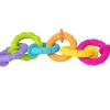 Προτείνεται για την ανακούφιση του πόνου από τα νεοφυή δόντια. Νιώσε τις έντονες υφές, δημιούργησε αλυσίδα, κόλλα τους κρίκους μεταξύ τους ή τον καθένα από αυτούς σε οποιαδήποτε επιφάνεια, μη πορώδη. Τράβα την βεντούζα, για να ακούσεις το συναρπαστικό Pop. Κόλλα τα ξανά, ίσιωσέ τα ή ανακούφισε τον πόνο από τα δόντια, μασουλώντας τα. Αποτελείται από 6 χρωματιστούς κρίκους και 2 μικρές βεντούζες για κάθε κρίκο. Είναι σίγουρο ότι, θα γίνει το νέο αγαπημένο του παιχνίδι.