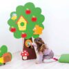 Το δέντρο διαθέτει κορμό με ενσωματωμένη υφασμάτινη τσέπη, όπου τα παιδιά μπορούν να τοποθετούν διάφορα αντικείμενα, ενισχύοντας την αίσθηση της αφής και την ικανότητα αναγνώρισης μέσω της αφής.