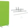 Ηχομονωτικό διαχωριστικό με άκαμπτο πλαίσιο ντυμένο με ύφασμα, τοποθετημένο σε βάσεις αλουμινίου. Δυνατότητα σύνδεσης πολλών διαχωριστικών σε διαφορετικές γωνίες. Περιλαμβάνει: 1 διαχωριστικό, 2 βάσεις με διαστάσεις 38 x 4 x 10,3 εκ. και 4 γάντζους με μία ράβδο ύψους 101,5 εκ. για σύνδεση. Χρώμα: λαχανί. Διαστάσεις: 80,5 x 160 εκ.