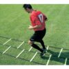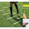 Η διπλή σκάλα επιτάχυνσης και ρυθμού μήκους 6 μέτρων είναι κατασκευασμένη από ανθεκτικό και εύκαμπτο πλαστικό υλικό, σχεδιασμένο ώστε να αντέχει σε εντατική προπόνηση και συχνή χρήση. Το σχέδιό της πληροί τις προδιαγραφές ασφαλείας, μειώνοντας τον κίνδυνο τραυματισμών κατά την ταχύτατη αλλαγή ποδιών ή κατεύθυνσης. Η έντονη φθορίζουσα κίτρινη απόχρωση της σκάλας εξασφαλίζει άριστη ορατότητα ακόμη και σε προπονήσεις με χαμηλό φωτισμό, καθιστώντας την ιδανική για χρήση σε απογευματινές ή βραδινές συνθήκες.