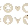 Διπλά κυκλικά διακοσμητικά ξύλινα. Σε 4 σχέδια assorted. Τεμάχιο. Διάμετρος: 7 εκ.