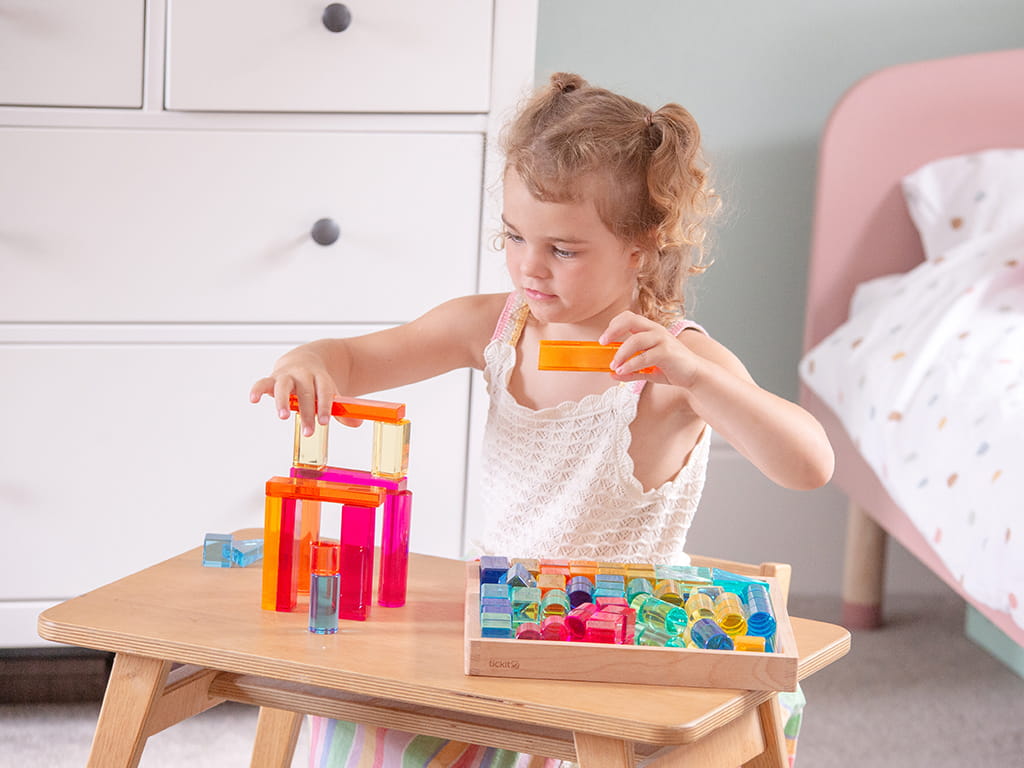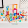 Το σετ επιτρέπει στο παιδί να εξελίξει τις δεξιότητές του από απλές δραστηριότητες στοίβαξης σε πιο σύνθετες αρχιτεκτονικές κατασκευές. Κατάλληλο για παιδιά από 3 ετών και άνω, προσφέρει εκπαιδευτικό, δημιουργικό και αισθητηριακό παιχνίδι, ενώ καλλιεργεί τη φαντασία, τον συντονισμό χεριού-ματιού και τις δεξιότητες επίλυσης προβλημάτων.