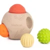 Eco big sensory balls αποτελείται από πέντε αισθητήριες μπάλες από φυσικό καουτσούκ που ενθαρρύνουν την απτική και οπτική διέγερση και επίσης συμβάλλει στην ανάπτυξη των κινητικών δεξιοτήτων των βρεφών. Χάρη στο μαλακό υλικό τους, τα παιδιά τα χειρίζονται πολύ εύκολα. Σχεδιασμένες σε εντυπωσιακά χρώματα και διαφορετικές υφές, οι μικρότερες μπάλες ταιριάζουν στη μεγάλη, επιτρέποντας έτσι επίσης την ανάπτυξη του συντονισμού χεριού-ματιού. Περιέχει: 1 μεγάλη μπάλα και 4 μικρές μπάλες με διαφορετική υφή, χρώματα και διαμέτρους.