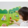Το παιχνίδι τοποθετείται στον τοίχο, εξοικονομώντας χώρο και παρέχοντας μια σταθερή και εύκολα προσβάσιμη επιφάνεια δραστηριοτήτων. Μέσα από το διαδραστικό παιχνίδι, τα παιδιά εξερευνούν διαφορετικές κινήσεις, ήχους και αισθήσεις, αναπτύσσοντας τις δεξιότητές τους μέσα από το παιχνίδι.