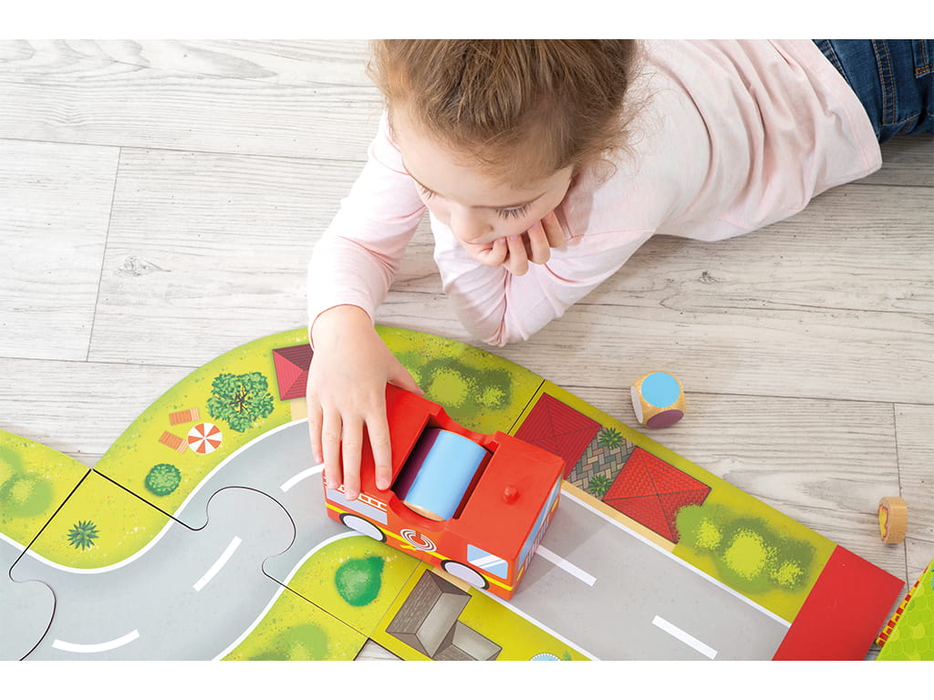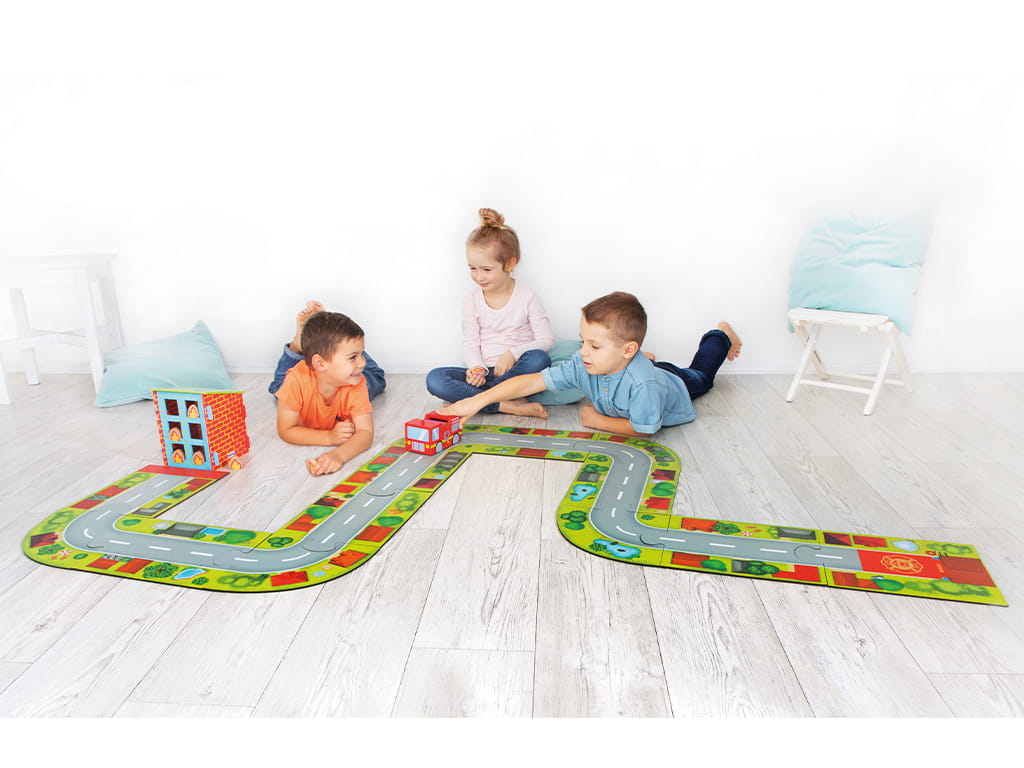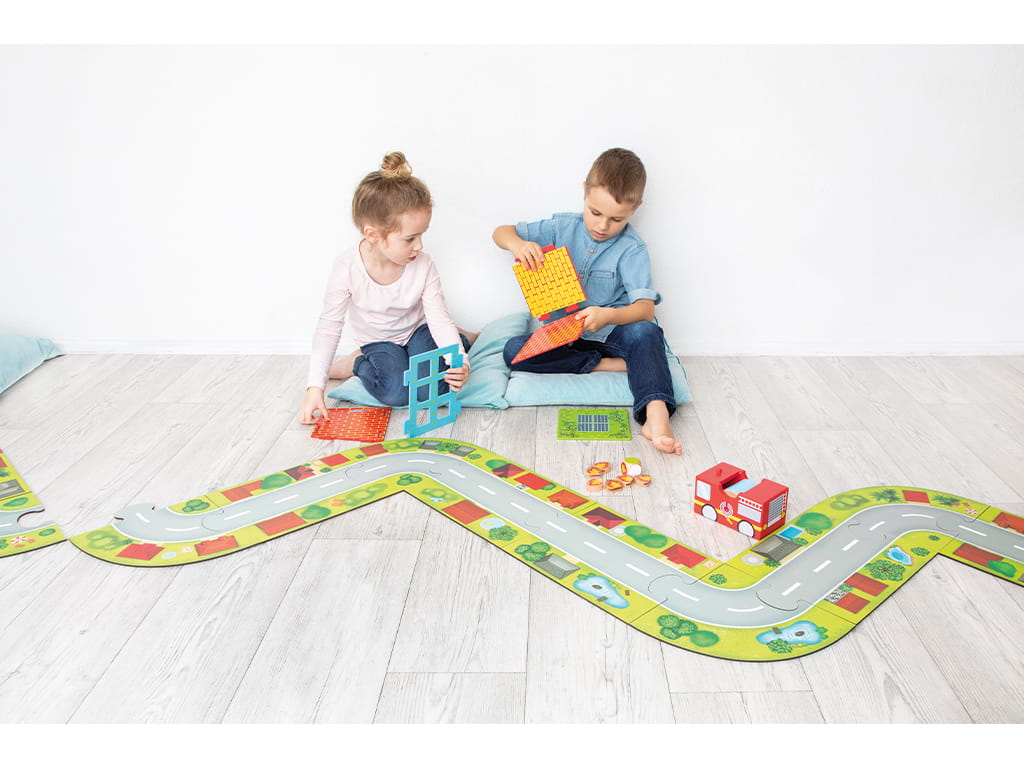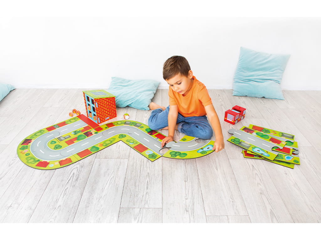 Το επιτραπέζιο δαπέδου XXL φέρνει την δράση και τη μάθηση στην επιφάνεια του δαπέδου, προσφέροντας μια διαδραστική εμπειρία για παιδιά 3 ετών και άνω. Με 26 ξύλινα κομμάτια, τα παιδιά μπορούν να δημιουργήσουν διαφορετικά σενάρια πυρκαγιάς και διάσωσης, εκπαιδεύοντας αναγνώριση χρωμάτων, συνεργασία και ομαδικό πνεύμα μέσα από το παιχνίδι.