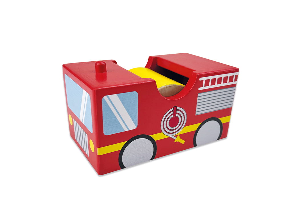 - Ξύλινο πυροσβεστικό όχημα με έγχρωμο περιστρεφόμενο τροχό