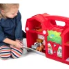 Φάρμα από πλαστικό ανθεκτικό υλικό. Το παιδί μπορεί να το μετακινήσει εύκολα χάρη στην ειδική λαβή του. Διαθέτει κουζινούλα, κοτέτσι, οχυρώνα με πόρτες που ανοιγοκλείνουν και δημιουργούν χώρο αποθήκευσης παιχνιδιών. Διαστάσεις: ύψος 36,5 εκ., πλάτος 17 εκ.