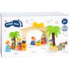 Φάτνη μινιατούρα, κατασκευασμένη από ξύλο. Τα παιδιά θα μάθουν την ιστορία της γέννησης του Χριστού μέσα από το παιχνίδι. Αποτελείται από τη φάτνη, 2 φοίνικες, 7 φιγούρες, 1 κούνια με μωρό και 4 ζώα. Διαστάσεις φάτνης: 23 x 12 x 16 εκ. Ηλικία: 3 ετών και άνω.