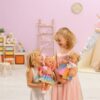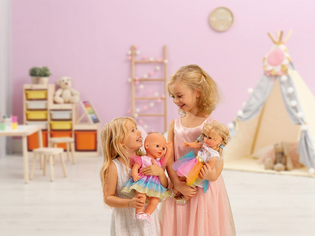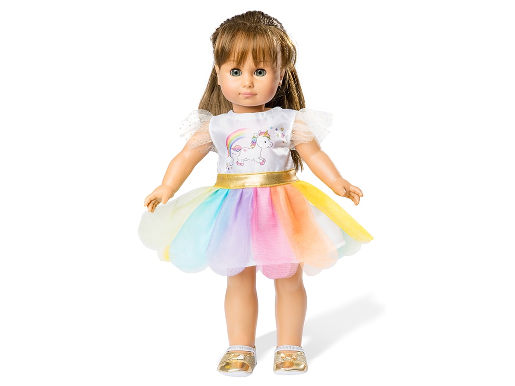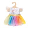 Χαριτωμένο φόρεμα κούκλας με σχέδιο μονόκερο, κατάλληλο για κούκλες ύψους 35–45 εκ. Ιδανικό για παιχνίδι γεμάτο φαντασία και χρώμα, προσφέρει μια μαγική και παραμυθένια εμφάνιση στην κούκλα.