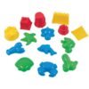 Καλούπια άμμου σε διάφορα χρώματα και σχέδια όπως, πυραμίδα, κάστρο, κοχύλι, καβουράκι, χελωνίτσα κ.α. Τεμάχια 14. Διαστάσεις: 4-6 x 2-5 x 1.5 x 4.5 εκ.