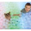 Φωτιζόμενη πισίνα Led με 3000 διάφανα μπαλάκια διαμέτρου 8 εκ. Στο εσωτερικό υπάρχει ένα στρώμα πάχους 3 εκ., με τοποθετημένες 5 σειρές έγχρωμων LED με διαφορετικό χρώμα η κάθε μία και σταθερό φως (περιλαμβάνεται τροφοδοτικό). Κατασκευασμένη από αφρώδες υλικό με επένδυση από ανθεκτική δερματίνη που καθαρίζει εύκολα.