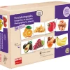 - Περιέχει 54 κάρτες διπλής όψης με φωτογραφίες τροφίμων και 1 βάση στήριξης.