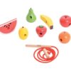 Το σετ φρούτων με κορδόνι περιέχει ξύλινα φρούτα σε έντονα χρώματα με ζωγραφισμένες λεπτομέρειες στο χέρι.