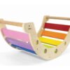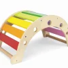 Γέφυρα και κούνια ισορροπίας. Είναι κατασκευασμένη από υψηλής ποιότητας μασίφ ξύλο, με χρώματα μη τοξικά και με στρογγυλεμένες άκρες. Μπορεί να χρησιμοποιηθεί ως τσουλήθρα, βάρκα, κρεβάτι, κουνιστή καρέκλα, τούνελ, τραπέζι και πολλά άλλα. Αυτό το παιχνίδι ξυπνά τη φαντασία, δυναμώνει τους μύες και προάγει την ισορροπία και τον συντονισμό του σώματος. Διαστάσεις: 75 x 39,5 x 35 εκ. Ηλικία: 3 ετών και άνω.