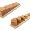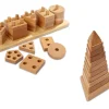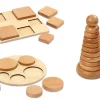 Γεωμετρικά σχήματα σετ 12 παιχνίδια από μασίφ ξύλο οξιάς. Σε φυσικό χρώμα, ώστε να μην αποσπάτε η προσοχή των παιδιών. Τα δύο πρώτα χρόνια, τα μικρά παιδιά αποκτούν ένα ευρύ φάσμα αισθητικοκινητικών δεξιοτήτων. Με αυτο το σετ μαθαίνουν επαναλαμβάνοντας τα σχήματα, τα μεγέθη και βελτιώνουν την ικανότητα συγκέντρωσης και τη λεπτή κινητικότητα τους.